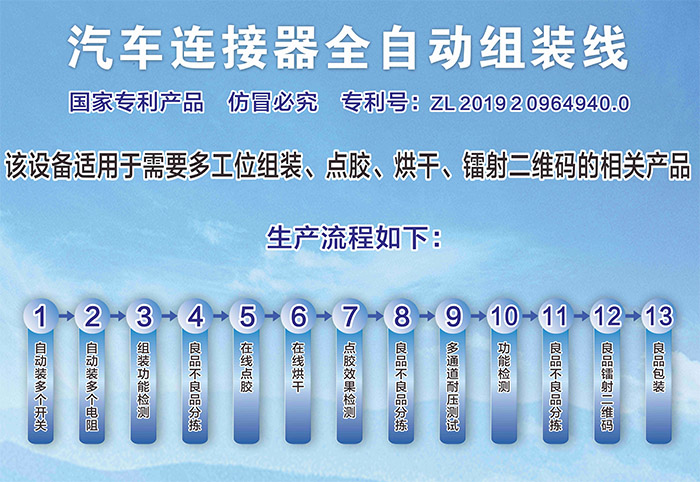 汽车门锁连接器自动组装、点胶、焗炉测试自动线